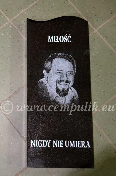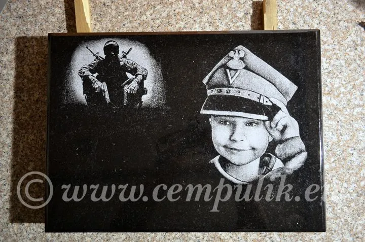 Oferujemy wizerunki na płytkach granitowych do przyklejenia na istniejącym nagrobku. Standardowe wymiary: A5 (20x15cm), A4 (30x20cm), A3 (30x45cm) lub dowolny wymiar.