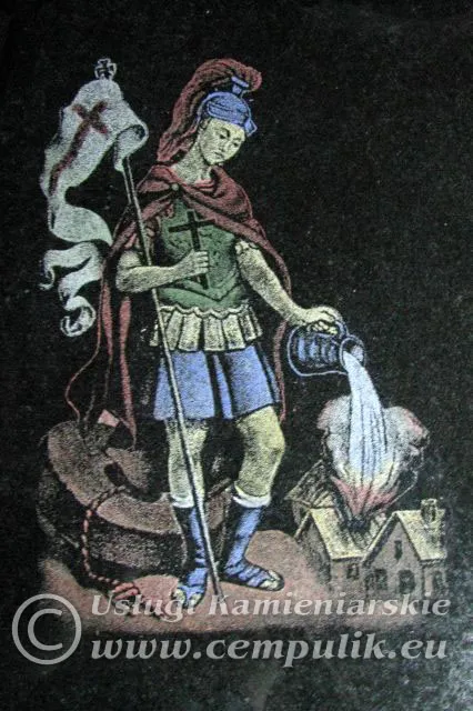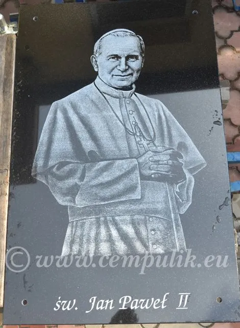 Klin granitowy przyklejony z tyłu pozwala na osadzenie wizerunku pod kątem. Chroni to przed zaleganiem śniegu i poprawia widoczność portretu.