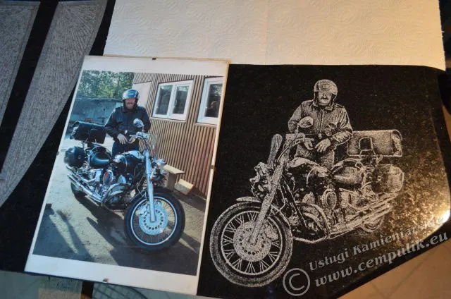 Grawerujemy portrety osób, ale również postacie świętych, motywy sakralne czy symbole pasji – motocykle, samochody i zwierzęta. Nasze realizacje zdobią zarówno nagrobki (fotografia na pomniku), jak i wnętrza domów (jako wyjątkowy prezent).