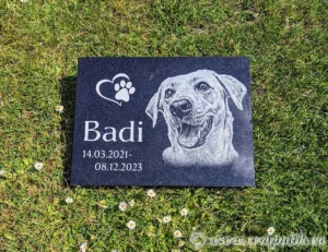 Granitowa Płyta – Wieczna Pamiątka W naszym warsztacie postanowiliśmy uczcić pamięć Badi’ego w wyjątkowy sposób. Wybraliśmy piękną granitową płytę o prostokątnym kształcie. Na płycie wykuliśmy imię “BADI” oraz lata jego życia: 2010-2023. Obok imienia umieściliśmy grawer wykonany na podstawie przesłanej fotografii Personalizacja i… Dowiedz się więcej: Prostokątna płyta granitowa dla psa o imieniu Badi - Czarne serce nagrobne dla psa jamnika Brutusa