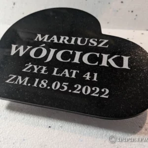 This elegant tilted heart is crafted from the finest black granite, polished to perfection on the front and sides to create a gleaming tribute to your cherished pet. The back of the heart has a natural, unpolished finish.